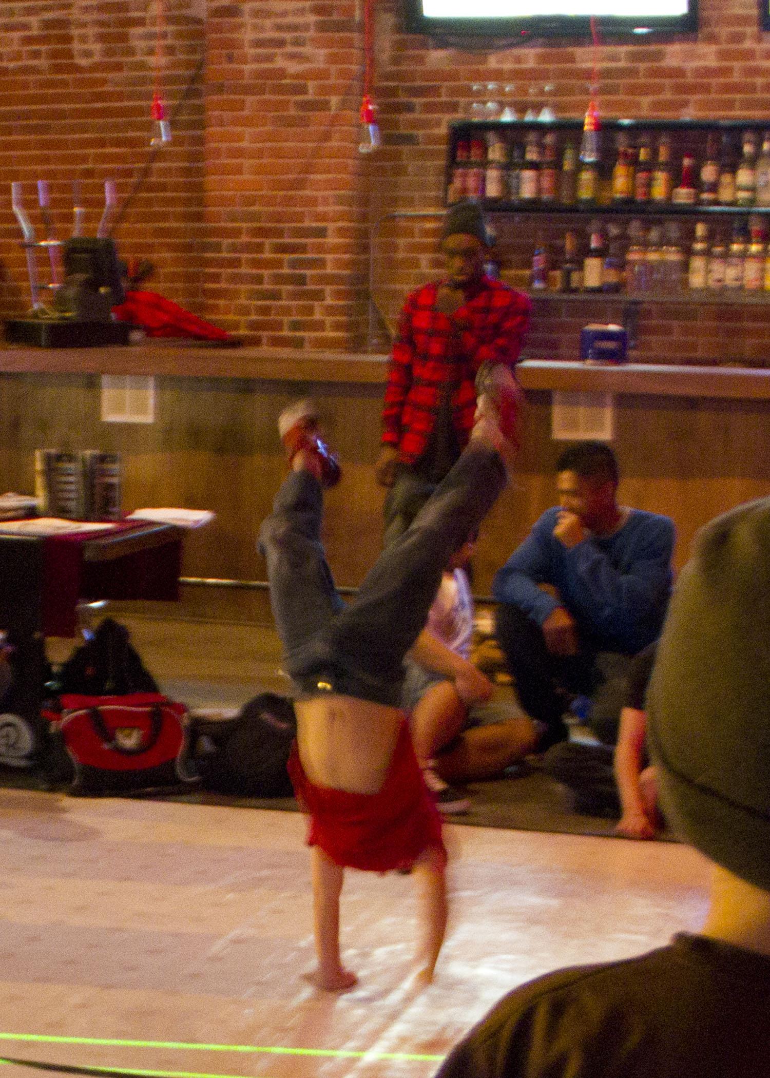 After watching Sam Flores paint again, Astrid was somehow able to pull me away to watch the mini B-Boy battle that was starting inside. I don’t mean that it was a small battle, the boys definitely brang it. I mean that the boys were young shorties. The first battle was for the under 18 set.